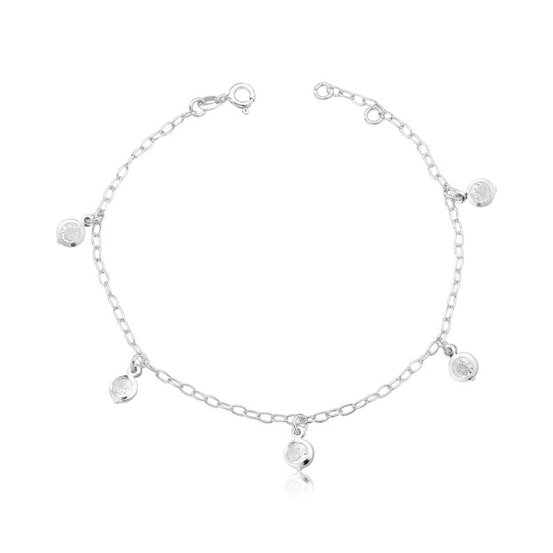 Pulseira prata 925 trabalhada em circulos com zircônia